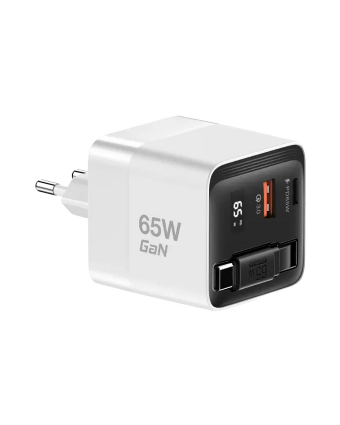 MIRACASE | מטען קיר מהיר עם כבל נשלף 65W | יבואן רשמי -אחריות לשנה